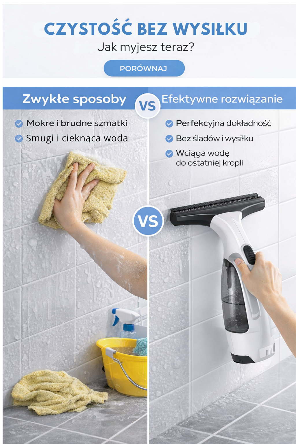 Koniec z mokrą szmatą i smugami. Jedno urządzenie, idealnie sucha powierzchnia.