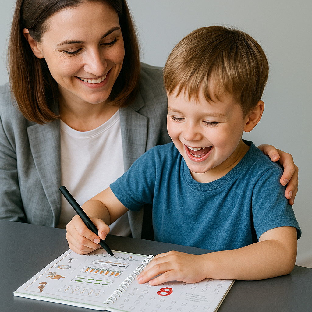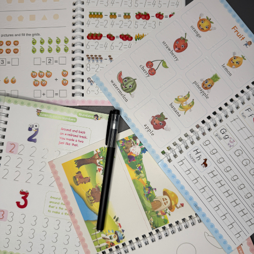 SkillBook™ działa w prosty, ale niezwykle skuteczny sposób — dzieci poprawiają literki, cyferki i słowa po wypukłym tekście, dzięki czemu rozwijają pamięć mięśniową, uczą się języka angielskiego i doskonalą pismo. Książeczki pomagają też ćwiczyć podstawowe działania matematyczne oraz kreatywność dzięki części do rysowania. Nauka przez dotyk, zabawę i powtarzanie!