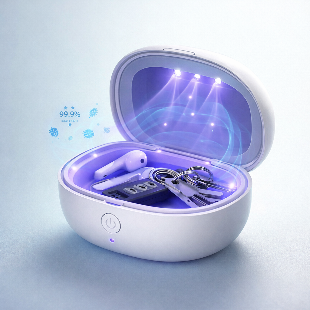 Sterioo wykorzystuje światło UV, aby skutecznie niszczyć bakterie i dbać o czystość małych przedmiotów, które masz zawsze przy sobie.